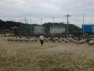 本日から体育祭の色練習がスタートしました。さあ、ここからチームワークを高めるのは赤青どちらの色でしょうか。楽しみです。こちらは青組のグラウンドの様子です。