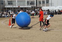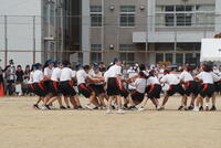 女子縦割り種目の棒引きではチームワークが光っていました。青組の瞬発力がすごい!